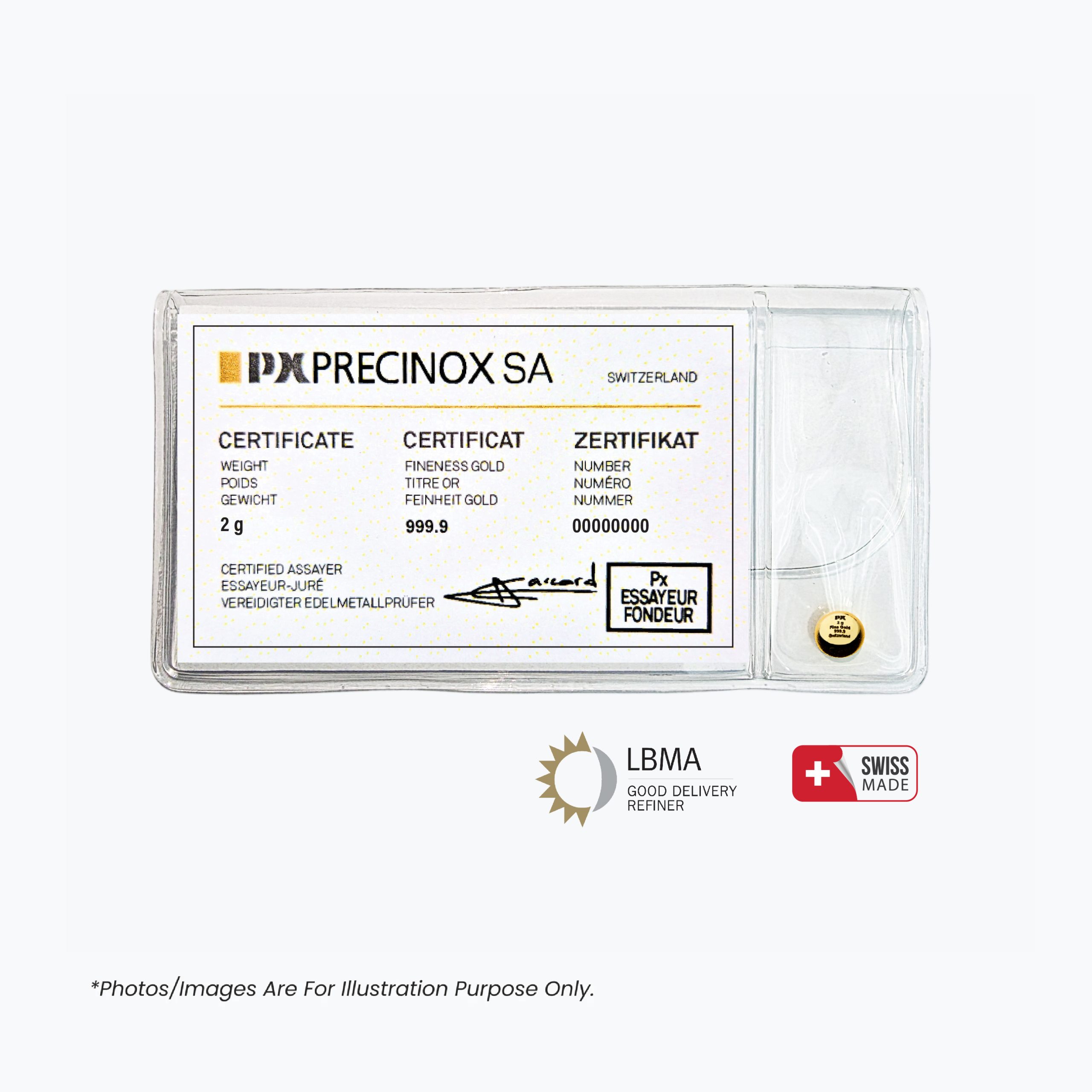 Home Gold Bullion Px Precinox (Switzerland) Gold Mini Cast (Lingotins) 2g